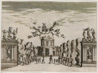Previous ImageNext Image Grafik aus dem Klebeband Nr. 15 der Fürstlich Waldeckschen Hofbibliothek Arolsen Feuerwerksdrama Medea vendicativa von Pietro Baolo Bissari mit Musik von Johann Kaspar Kerll