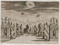 Grafik aus dem Klebeband Nr. 15 der Fürstlich Waldeckschen Hofbibliothek Arolsen Feuerwerksdrama Medea vendicativa von Pietro Baolo Bissari mit Musik von Johann Kaspar Kerll